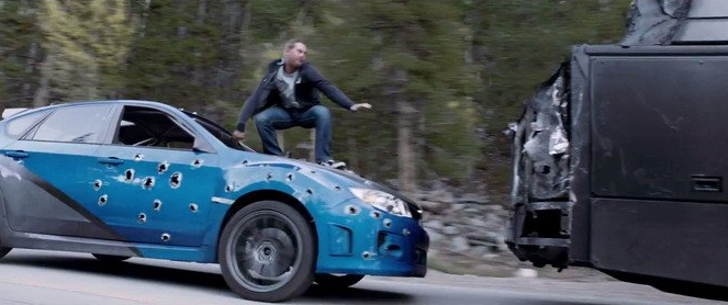 我很高興又在第七部里面看到了斯巴魯STI,當(dāng)年在第四部中馳騁沙漠大秀性能而又毀于墨西哥的詭異礦洞,雖然熱血的劇情和追逐鏡頭讓人很過癮,但是這樣的結(jié)局對(duì)于STI……我始終是有點(diǎn)不滿??赐暧捌笪也胖?,在第七部中STI又一次救主角于危難,然后自毀了……